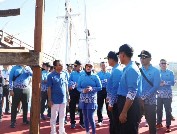 Kapal Pinisi ini dibuat langsung di Kota Makassar untuk menyambut kedatangan para peserta Multilateral Naval Exercise Komodo (MNEK) 2023 yang mendatangkan TNI AL dari 36 Negara.
