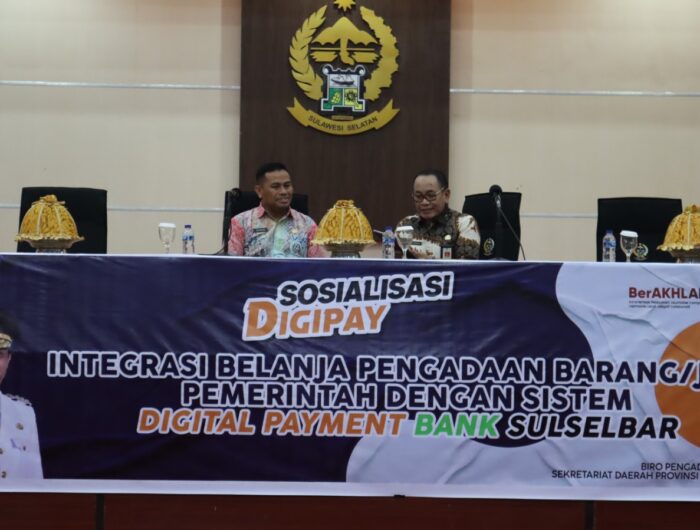 MAKASSAR, SULSELPASTI.COM — Biro Pengadaan Barang dan Jasa (PBJ) Sekretariat Daerah Provinsi Sulawesi Selatan menggelar Sosialisasi Integrasi Belanja Pengadaan Pemerintah dengan Digital Payment Bank Sulselbar dan Penerbitan Tanda Tangan Elektronik pada Aplikasi BajuBodo di Ruang Pola Kantor Gubernur Sulsel, Kamis (27/07/2023).