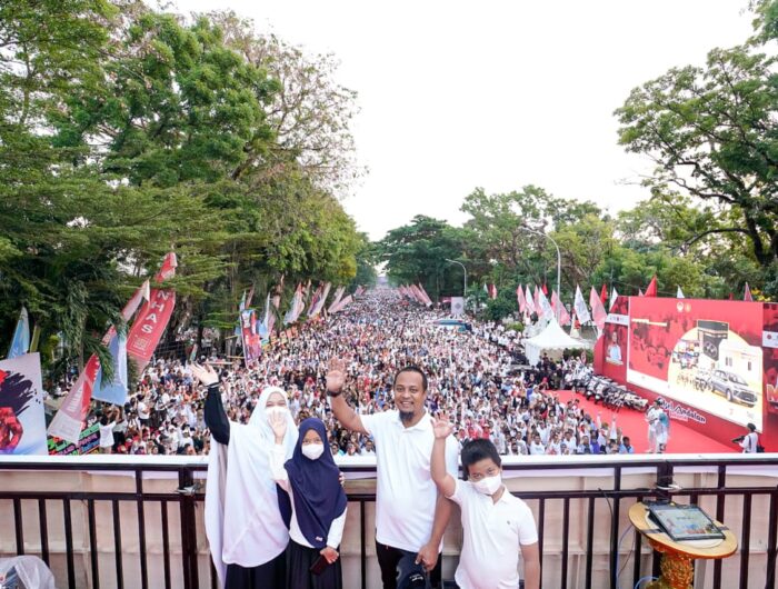 “Saya bangga berada di sini, saya bangga berada di tengah rakyat Sulawesi Selatan, saya bangga dengan semangat saudara-saudara sekalian, kesetiaan saudara-saudara sekalian. Selamat 354 tahun Sulsel,” imbuhnya.