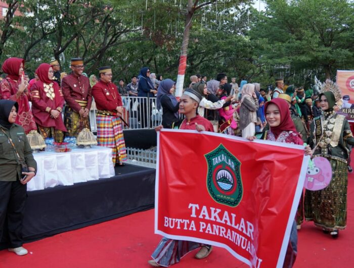 TAKALAR, SULSELPASTI.COM — Pj. Bupati Takalar Dr. Setiawan Aswad, M. Dev. Plg dan Pj. Ketua TP. PKK Kab. Takalar bersama jajarannya ikut meriahkan Kirab Budaya Hari Jadi Provinsi Sulawesi Selatan ke-354 yang dilaksanakan di Anjungan Pantai Losari, Sabtu (21/10).