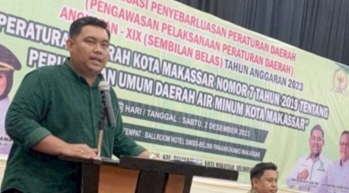 MAKASSAR, SULSELPASTI.COM – Anggota DPRD Kota Makassar, Imam Musakkar menggelar Sosialisasi Penyebarluasan Peraturan Daerah (Perda) Nomor 7 Tahun 2019 tentang Perusahaan Umum Daerah Air Minum (PDAM) Kota Makassar, bertempat di Hotel Swiss-Belinn, Jalan Boulevard, Sabtu, 2 Desember 2023.
