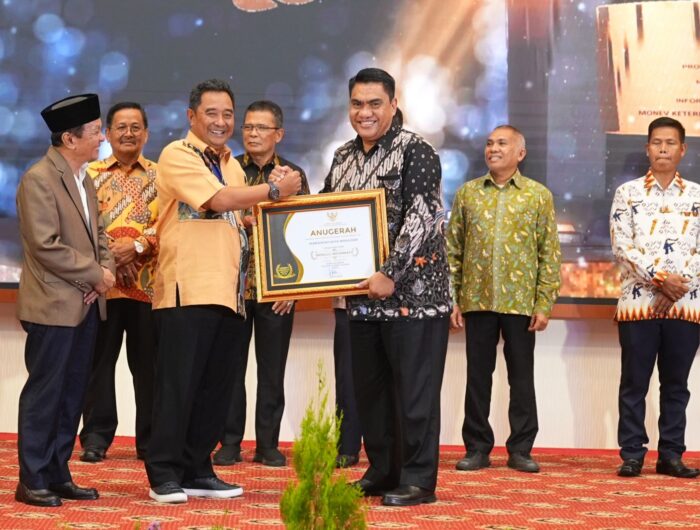 Dalam sambutannya, Pj Gubernur Sulsel Bahtiar Baharuddin memberikan apresiasi kepada seluruh pelayan publik dan pemerintah daerah yang telah berhasil meraih penghargaan Keterbukaan Informasi Publik.