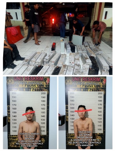 Kini kedua tersangka bersama puluhan barang bukti baterai tower diamankan unit Opsnal Polsek Bontoala untuk proses hukum lebih lanjut. (ipl/*)