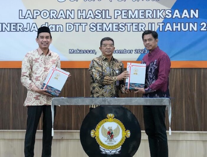 MAKASSAR, SULSELPASTI.COM — Badan Pemeriksa Keuangan (BPK) Perwakilan Provinsi Sulawesi Selatan resmi menyerahkan Laporan Hasil Pemeriksaan Kinerja (LHPK) Semester II Tahun 2023 kepada Pemerintah Kota Makassar, di Aula Kantor BPK Perwakilan Provinsi Sulawesi Selatan, Jumat (19/01/2024).
