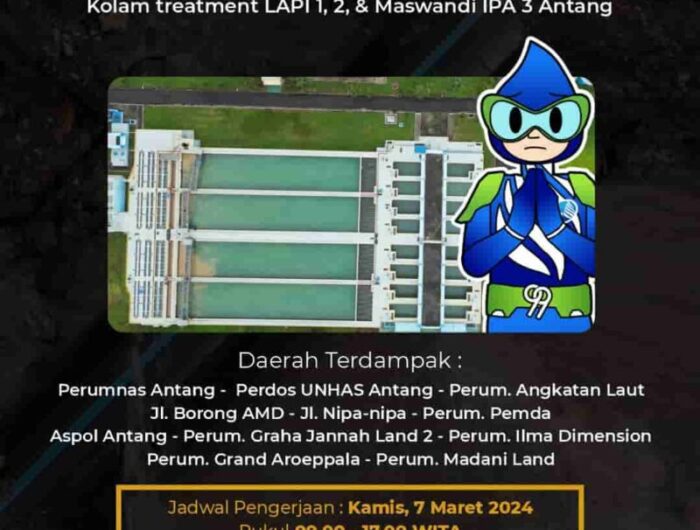MAKASSAR, SULSELPASTI.COM — Pihak Perumda Air Minum Kota Makassar akan melakukan pengerjaan pengurasan kolam treatment LAPI 1, 2 dan Maswandi IPA 3 Antang.