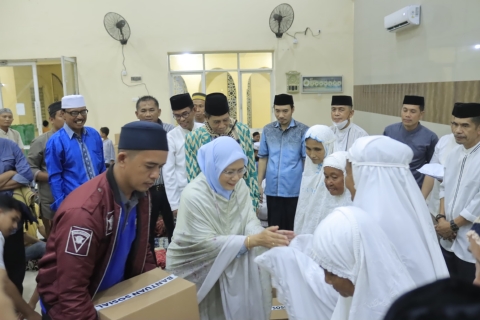 Diakhir acara Pj. Bupati menyerahkan bantuan senilai 10 juta untuk pembangunan masjid, 30 paket sembako untuk lansia dan bantuan Al-Qur’an.