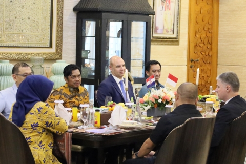 Usai berbincang santai dengan Dubes Kroasia Nebosja Koharovic dan Dirjen Kemenlu Pater Mihatov, Firman Pagarra menjamu makan siang dengan beragam aneka menu hidangan khas Makassar, Sulawesi Selatan.
