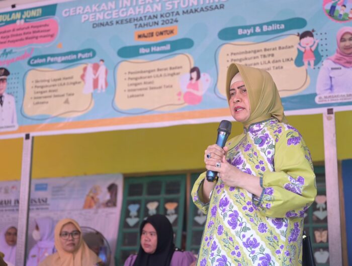 Indira berkunjung untuk meninjau langsung kegiatan Gerakan Intervensi Serentak Pencegahan Stunting yang digelar oleh Dinas Kesehatan Kota Makassar.