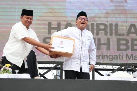 Selain penyerahan paket sembako Danny Pomanto juga memberikan 2 paket umroh kepada dua orang jemaah (1 perempuan 1 laki-laki) shalat subuh berjamaah diumumkan lewat nomor undian yang telah dibagikan sebelumnya.