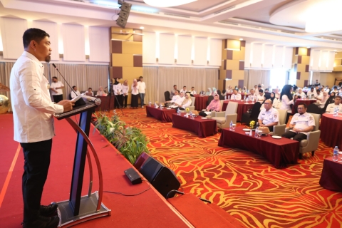 MAKASSAR, SULSELPASTI.COM — Pjs Wali Kota Makassar, Andi Arwin Azis membuka Launching dan Bimtek Aplikasi SRIKANDI, yang digelar di Hotel Aston, Rabu (16/10/2024).