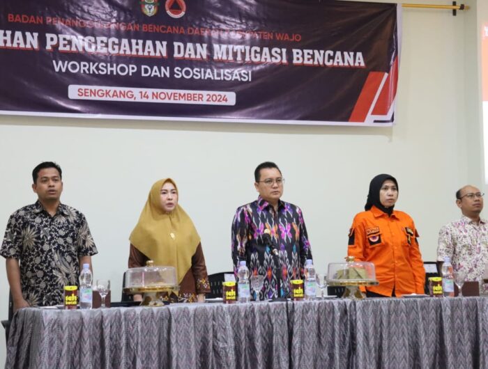 WAJO, SULSELPASTI.COM — Badan penanggulangan bencana daerah Kabupaten Wajo mengadakan workshop dan sosialisasi pencegahan dan mitigasi bencana di Hotel Sallo, Kamis (14/11/2024).
