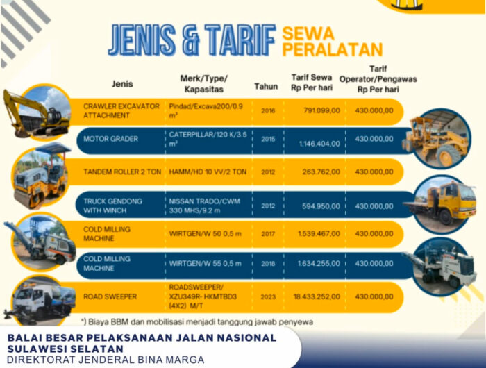 layanan sewa peralatan, Balai Besar Pelaksanaan Jalan Nasional (BBPJN) Sulawesi Selatan meningkatkan kualitas layanan sewa peralatan konstruksi dengan menggelar Sosialisasi Layanan Sewa Peralatan di aula BBPJN Sulawesi
