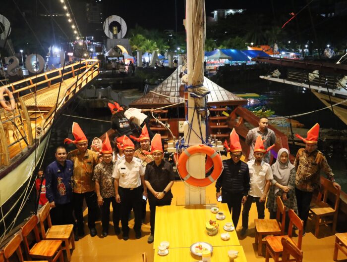 Sudah menjadi tradisi pemerintah kota, Danny Pomanto menjamu Menteri Kebudayaan Fadli Zon di atas Kapal Pinisi sembari menikmati angin sepoi-sepoi Pantai Losari di malam hari.