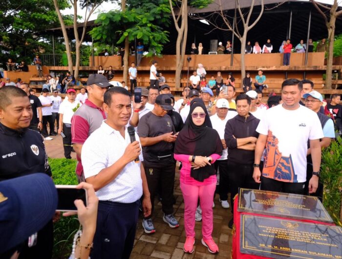 GOWA, SULSELPASTI.COM — Jogging track Ruang Terbuka Hijau (RTH) Lapangan Syekh Yusuf Kabupaten Gowa mulai digunakan setelah diresmikan Menteri Pertanian RI, Andi Amran Sulaiman bersama Bupati Gowa, Adnan Purichta Ichsan dan Bupati Gowa Terpilih, Sitti Husniah Talenrang yang ditandai dengan penandatanganan prasati hingga penggutingan pita, Sabtu (18/1) pagi.