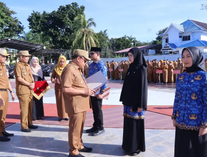 Penyerahan SK yang dirangkaikan dengan Apel Gabungan Organisasi Perangkat Daerah berlangsung di Lapangan Upacara Kantor Bupati Takalar, Senin 26 Maret 2025 dan dihadiri Wakil Bupati Takalar, Sekda Takalar, Pimpinan OPD Kab. Takalar, para Camat se-Kab. Takalar serta para Staf Lingkup Kab. Takalar.