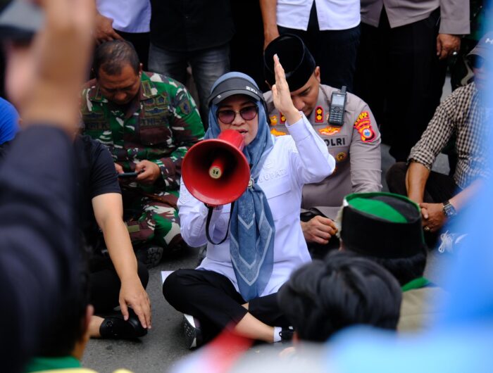 GOWA, SULSELPASTI.COM — Pemerintah Kabupaten (Pemkab) Gowa menunjukkan komitmen untuk selalu hadir dan mendengarkan setiap aspirasi masyarakat. Hal ini ditunjukkan Bupati Gowa, Husniah Talenrang dengan menemui langsung massa aksi damai dari Kelompok Cipayung Plus Kabupaten Gowa di depan Kantor Bupati Gowa, Rabu (3/9).