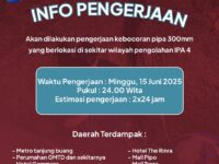 MAKASSAR, SULSELPASTI.COM — PDAM Kota Makassar kembali melakukan pengerjaan perbaikan kebocoran pipa berdiameter 300mm yang […]
